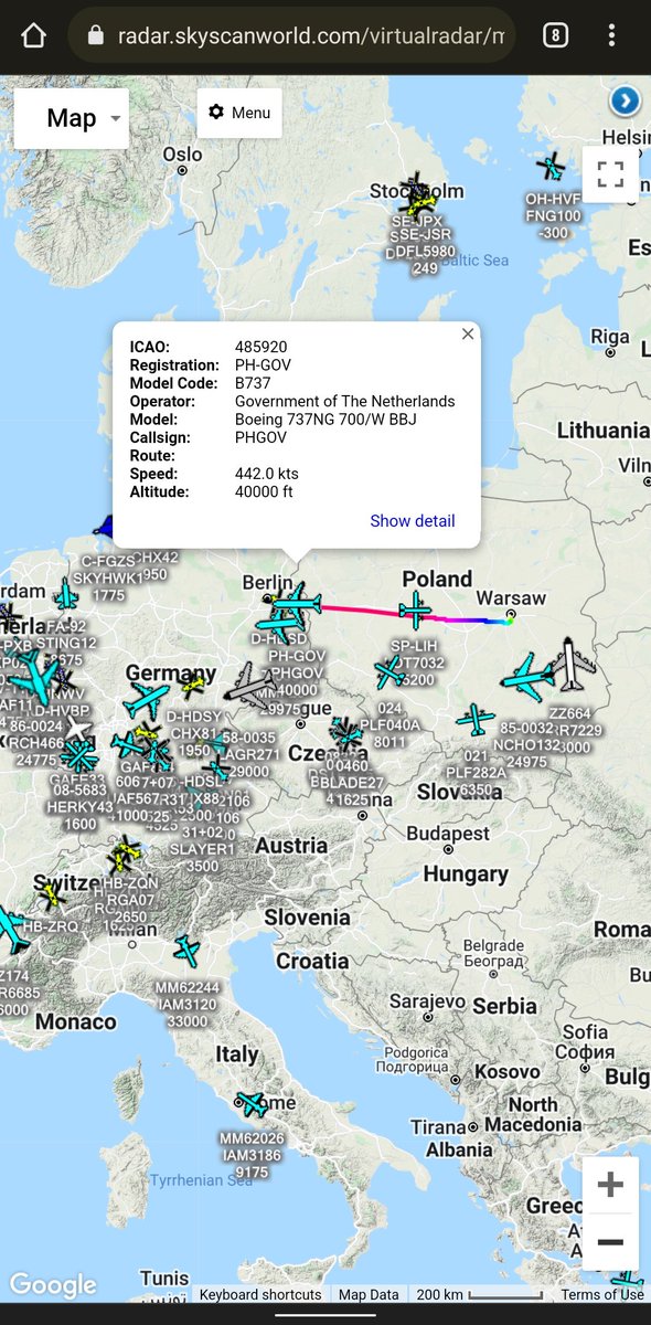In #Warsaw.#Rutte Is Travelling Home Aboard - PH-GOV - Boeing 737NG 700W BBJ -#PHGOVpic.twitter.com/Frq1hUTJYF