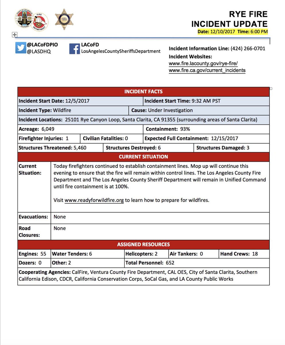 #RyeFire [update] off Rye Canyon Loop, west of Valencia (Los Angeles County) is now 6,049 acres and 80% contained. http://www.fire.ca.gov/current_incidents/incidentdetails/Index/1924 …pic.twitter.com/ifVPAJoaHG