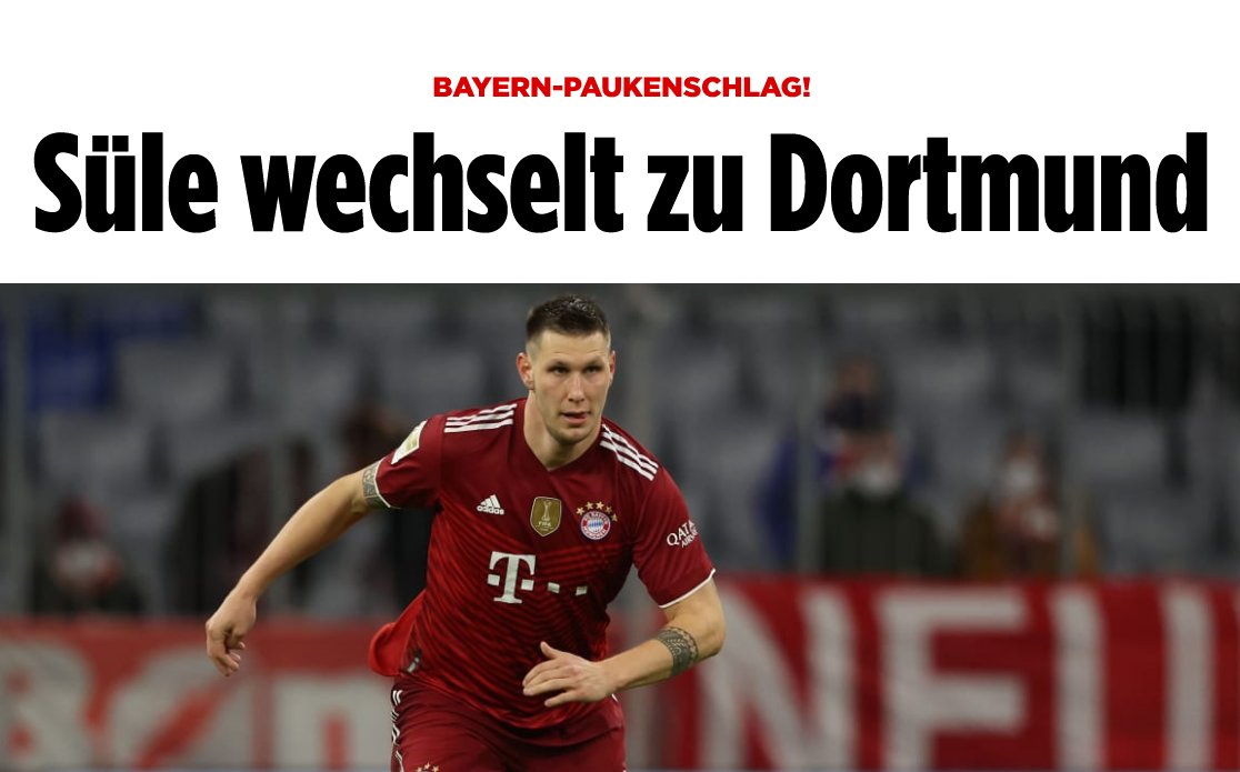 Official. Borussia Dortmund have reached an agreement with Niklas Süle to join the club as free agent from FC Bayern in June 2022.