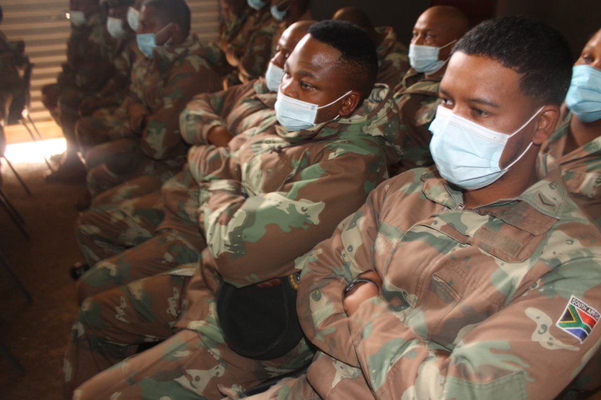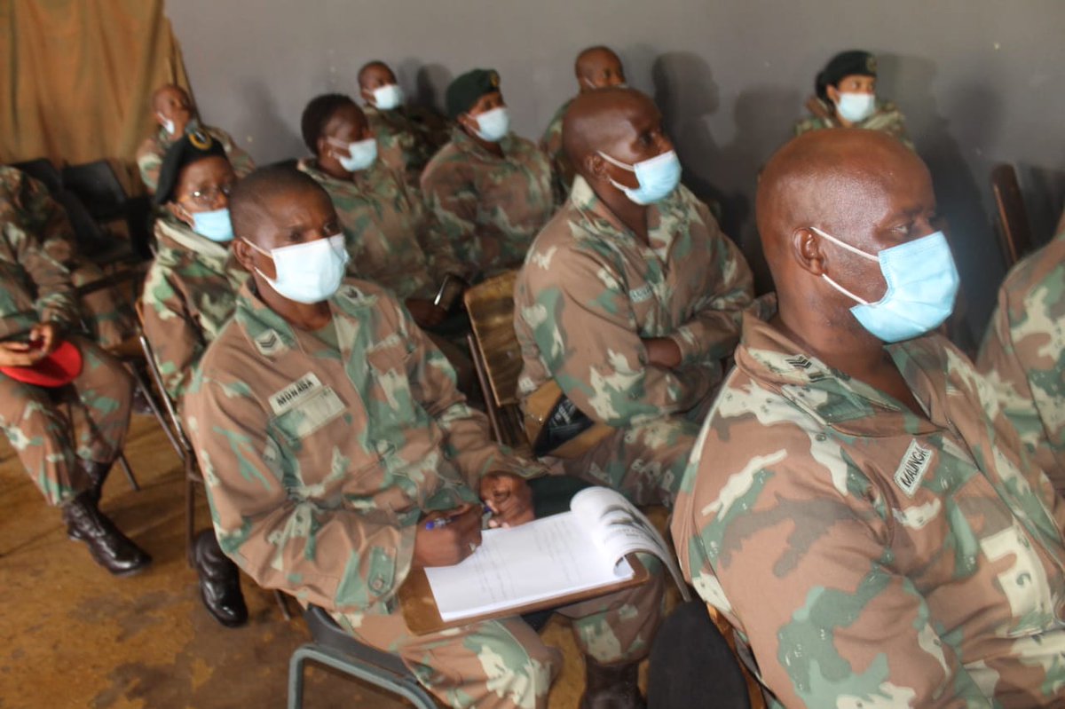 Officer Commanding Joint Tactical Headquarters North West, Colonel M.J. Ramakatsa presented his command brief to the incoming Alpha Company of Lenong Regiment. The briefing included all expectations and guidelines of the Commander to the deploying soldiers.