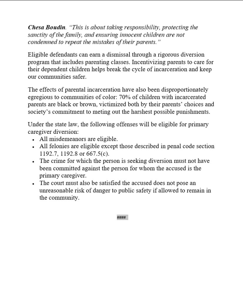 #SB394, the new law that allows counties to create pretrial diversion programs for parents/guardians who are charged with nonserious, nonviolent felonies rather than incarcerate them --> https://sd09.senate.ca.gov/news/20191008-gov-newsom-signs-sb-394-caregiver-court-diversion …Prikaži ovu nit -