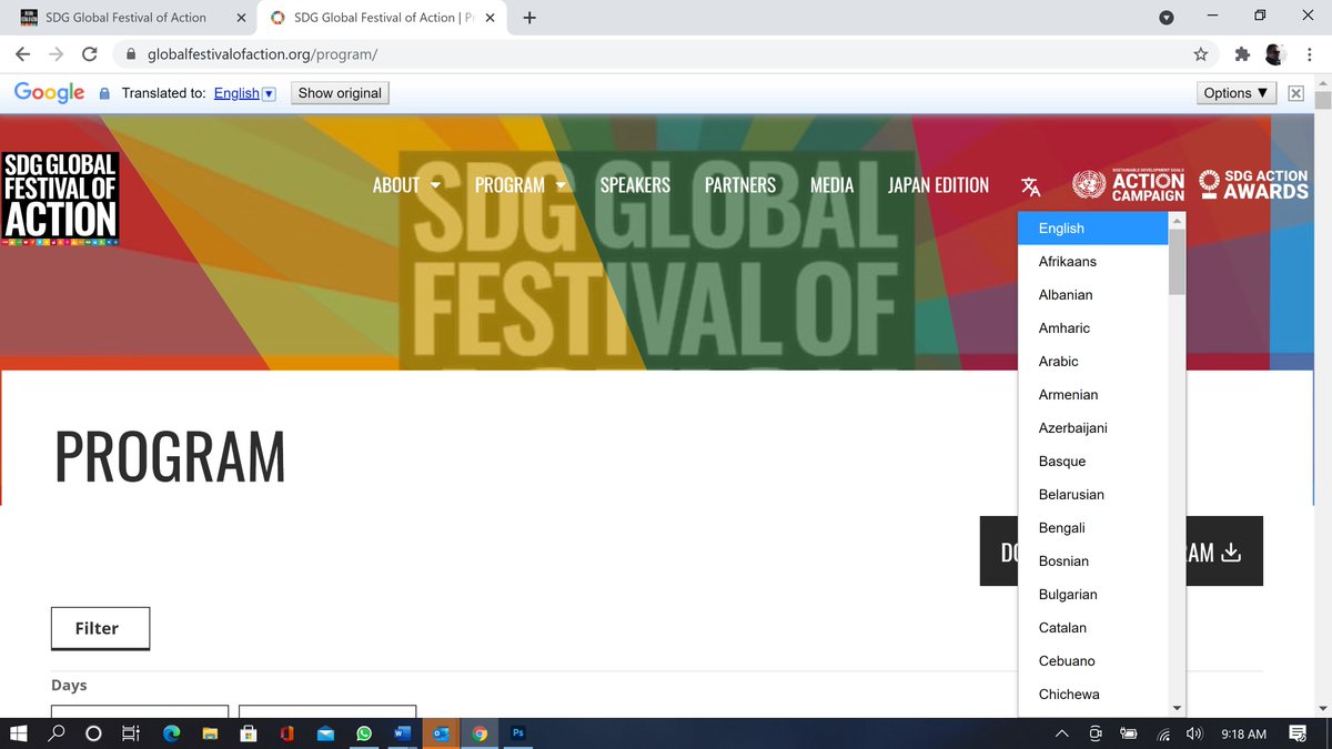 I just checked out the programme on their website, and what is amazing is that you can see it in nearly any language on Earth! BRAVO @SDGaction campaign!#SDGglobalFest
