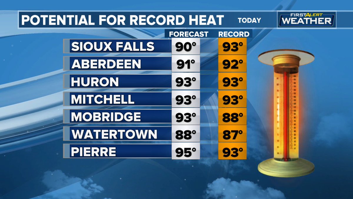 We're looking at some potential record high temperatures across the region later today. Some of those records are pretty old, too. The Sioux Falls record goes back to 1894!