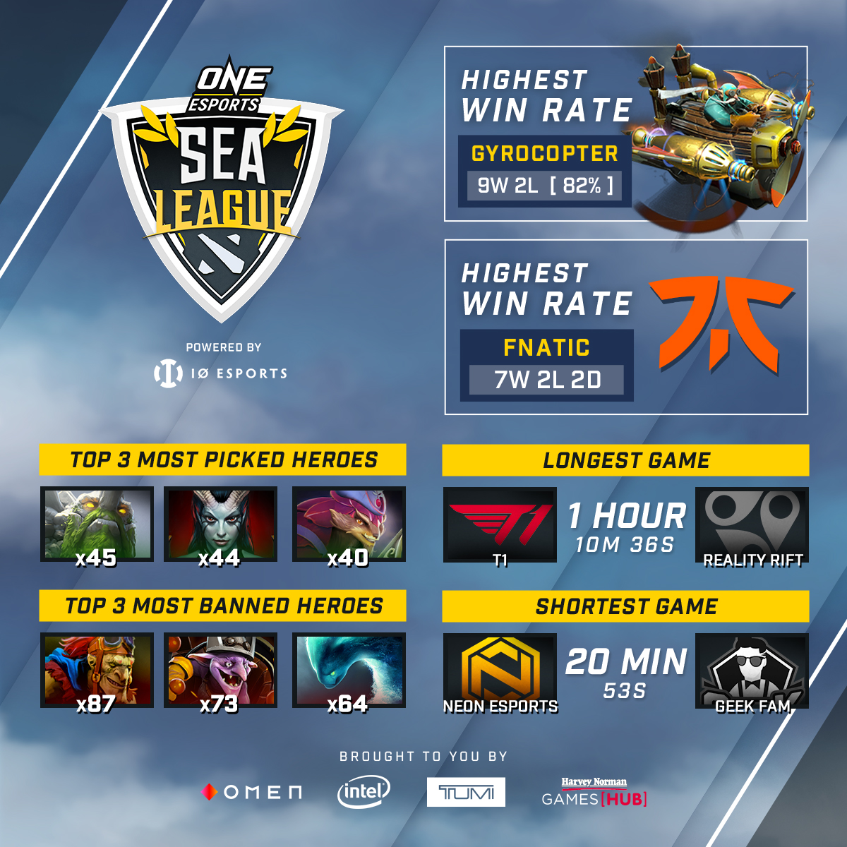 @ONEEsports Dota 2 SEA League. Did you know that Batrider was the most banned hero of the entire series? Or the fact that the shortest game is only 20 minutes and 53 seconds?#ONEDota2#SEADota pic.twitter.com/mOBdOQdcKh