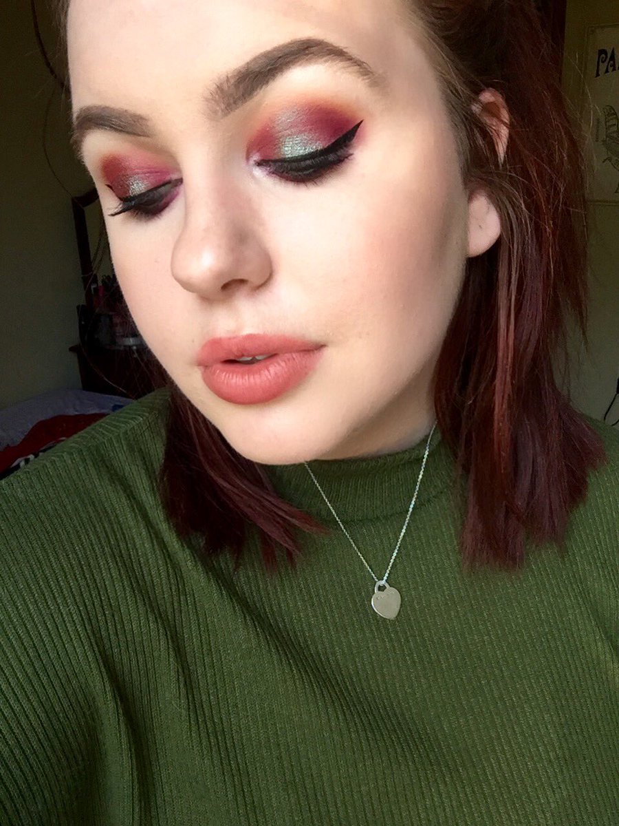 I stole my brother's lamp to take selfies bc I'm loving the green shadow look I did
