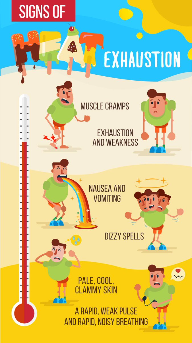 #HeatExhaustion is serious. Look out for your mates and seek medical attention immediately if you believe someone is showing these symptoms.#SEQld#SEQHeatwave@BOM_Qldpic.twitter.com/7lifAxb96C