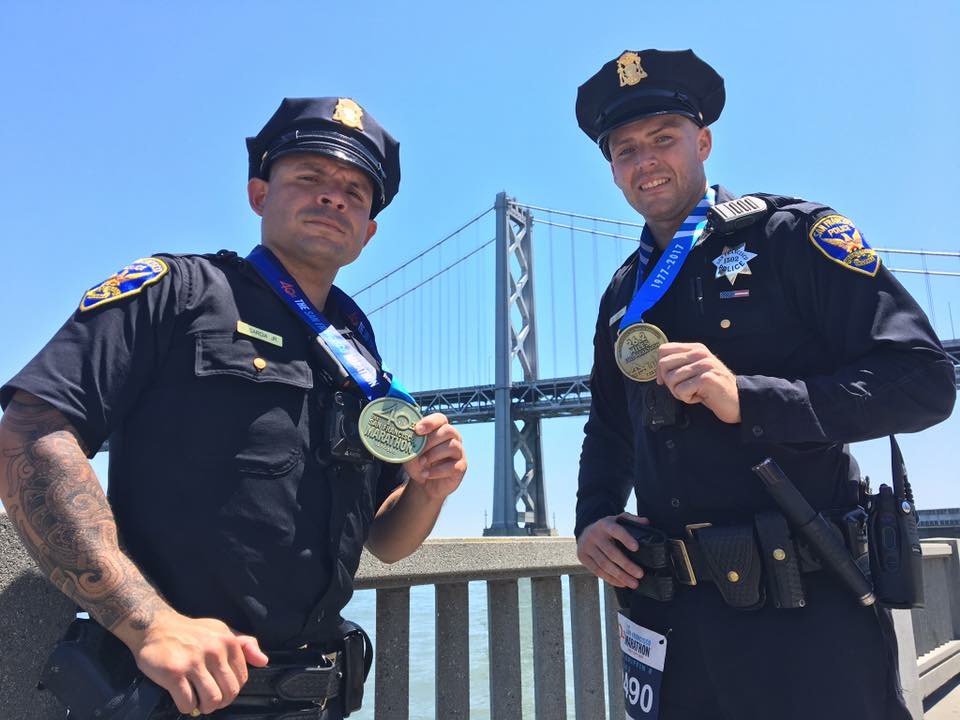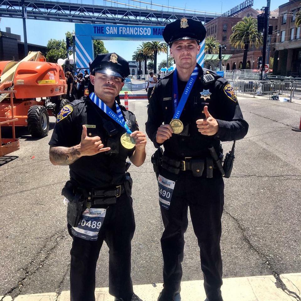 #SFPD Ofc. Irving Garcia & Ofc. Glenn Griffin ran today's 26 mile#SFMarathon in full uniform to honor fallen officers. pic.twitter.com/idC3MDgmLI