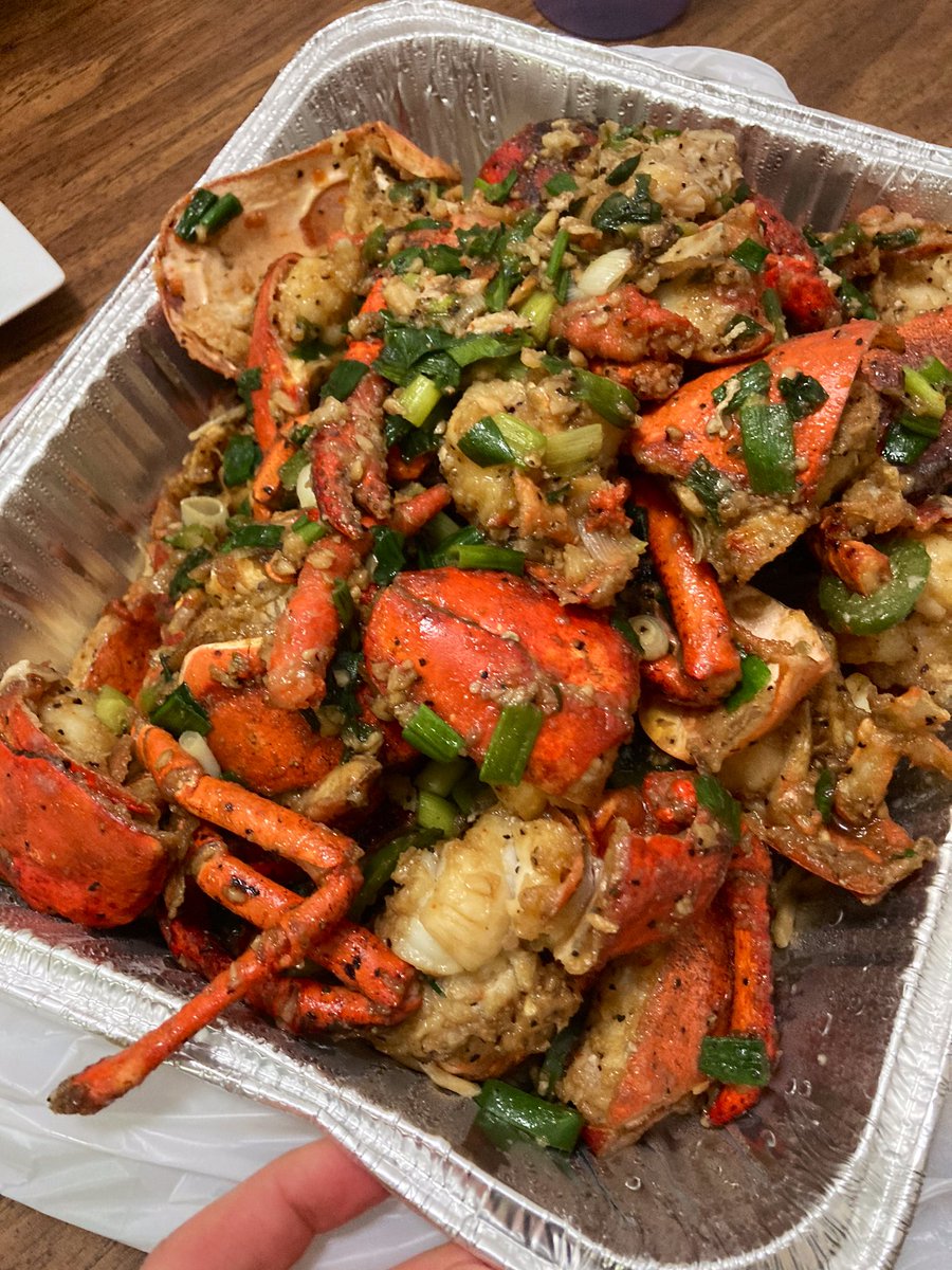 4.25 lbs of the “house special lobster” w/ garlic noodles from Boston Lobster in the