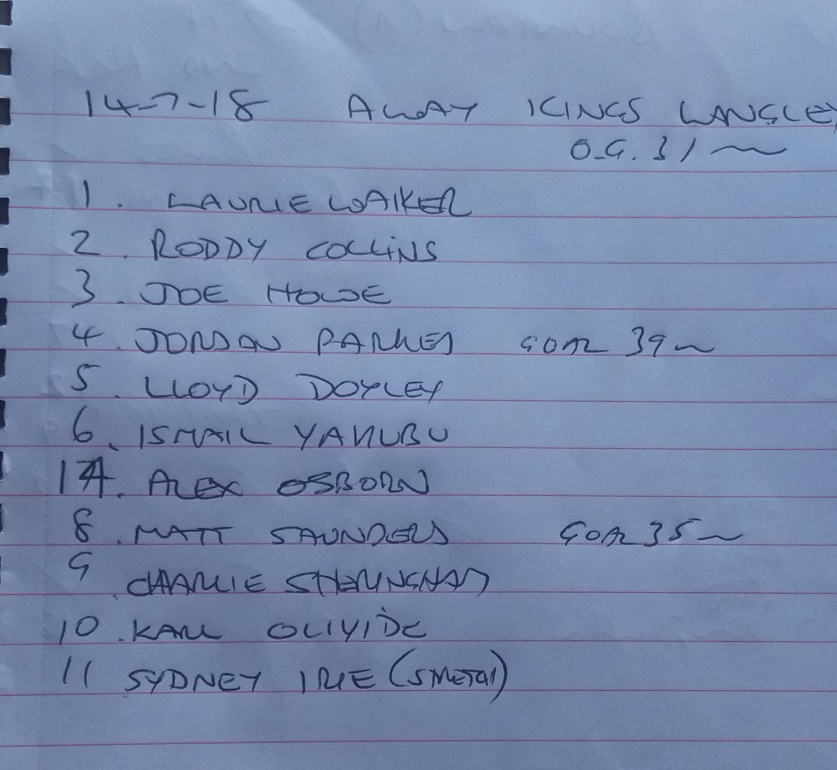 Team sheet .. and #Sid also here for@tudor_army@nonleaguedogs .. great@ColinPerreira has made the trip