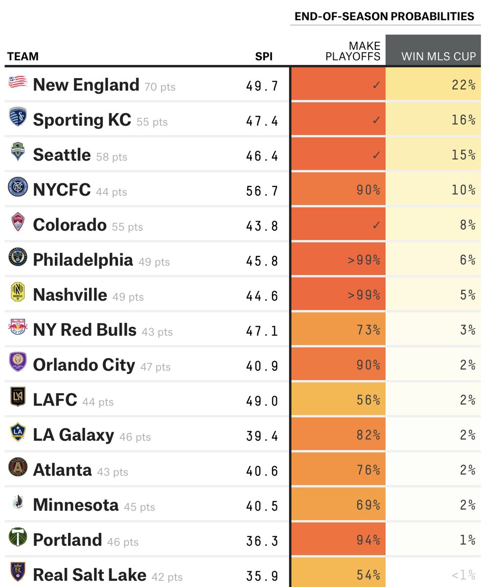 have an 82% chance of making the playoffs and 2% odds of winning MLS Cup according to the latest from FiveThirtyEight #SKCvLA