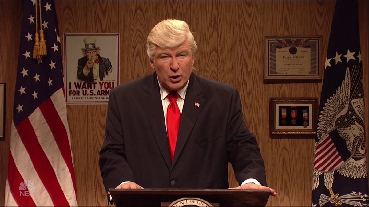 #SNLLiveCoastToCoast Trump sits on every chair like it's a toilet