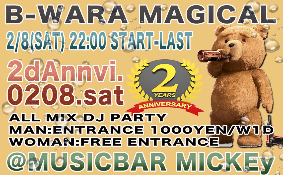 2/8(土)B-WARA-2周年-DJイベント 22〜23時までVDJさせていただきます。