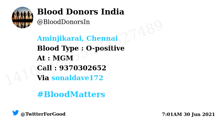 #SOS#Aminjikarai, Chennai Need#Blood Type : O-positive Blood Component : Blood Number of Units : 20 units Primary Number : 9370302652 Patient : Swarnika Gupta Illness : Heart Transplant Via:@sonaldave172#BloodMatters Powered by Twitterpic.twitter.com/aefJq3YIUH