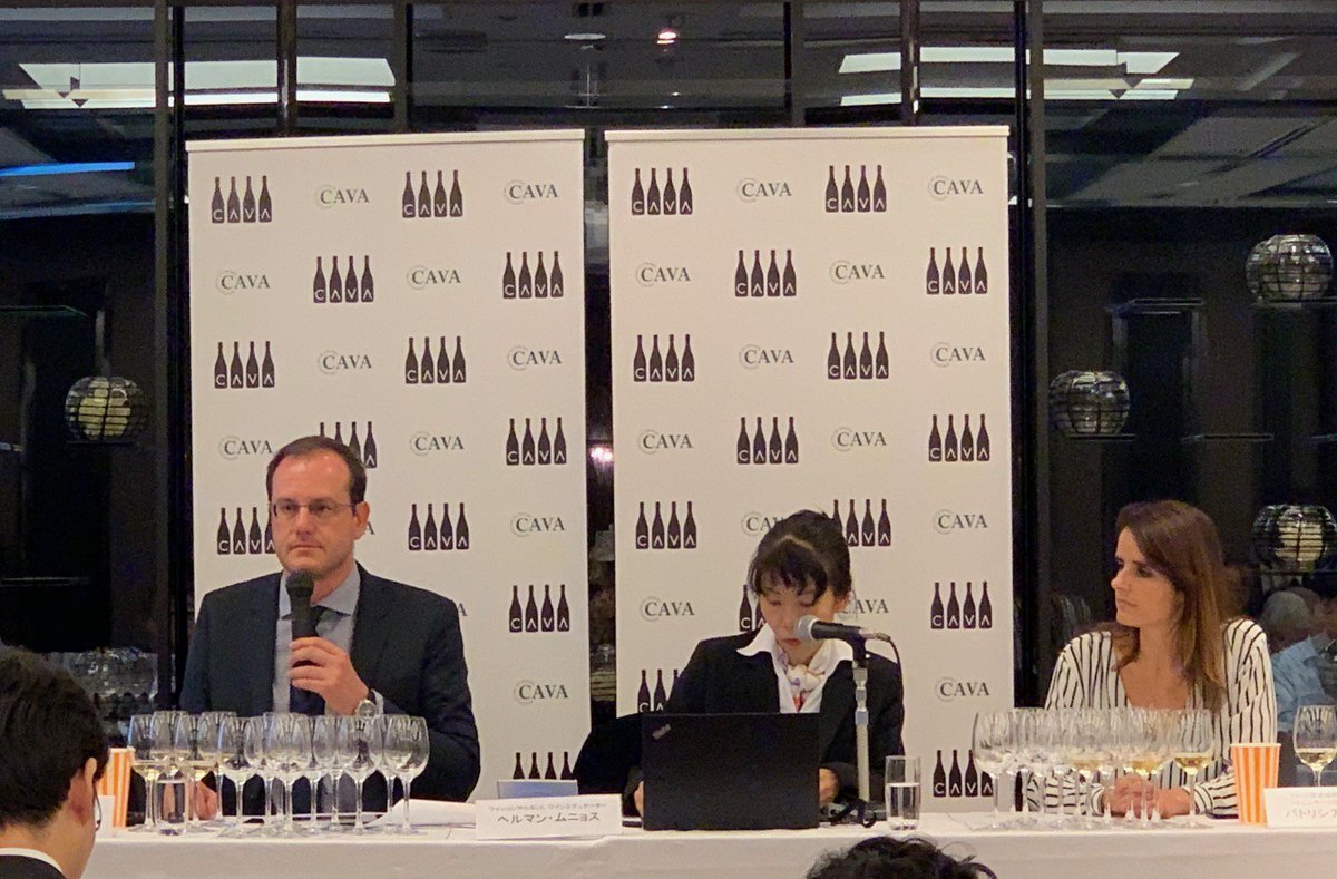 29日は午前中にプレミアム・カバのマスタークラスセミナー。講師のヘルマン・ムニョスさん(左)が12種のカバの試飲を交えながらスペインの上質なカバの魅力と日本市場における展望を解説!
