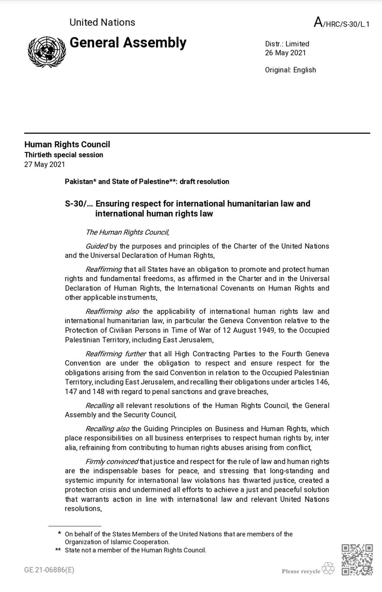 #HRC Special Session#SS30 on grave situation in Occupied Palestine,Foreign Minister@SMQureshiPTI said that Palestinians have again faced relentless onslaught on their rights in 02 weeks of brutal Israeli aggression, compounding the perpetual Palestinian tragedy:pic.twitter.com/6E95ae24K7Show this thread -