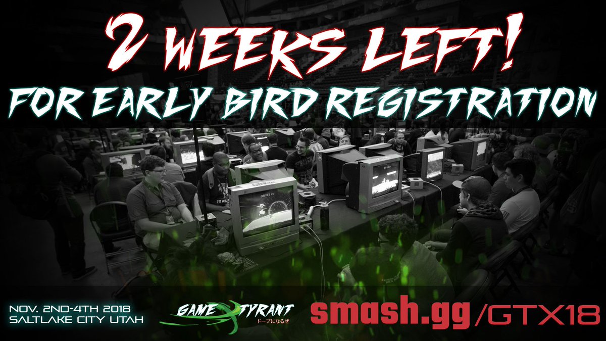There are just 2 WEEKS Left of early bird registration for GT-X! Get your tickets now before the prices increase on July 22nd! Register here: http://smash.gg/gtx !