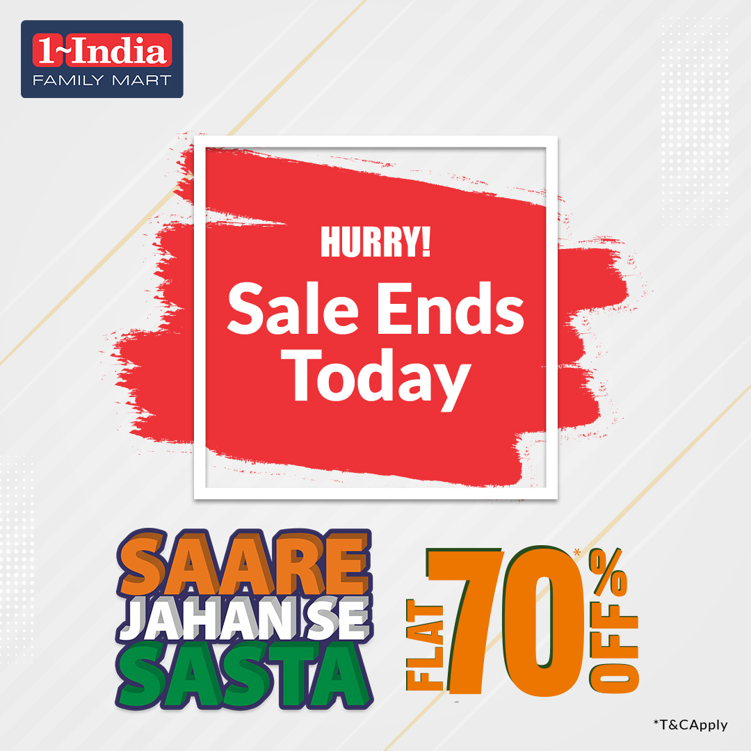 Steal the deal before our Saare Jaha Se Sasta sale ends! Avail a discount of flat 70% OFF on winter fashion collection at 1-India Family Mart. Hurry, visit your nearest store now! *T&C Apply.