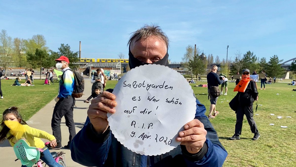 Sabotgarden [geräumter Zelt-und Wagenplatz] es war schön auf dir! R.I.P. 9. April 2020 Berlin-Kreuzberg, Gleisdreieckpark, unangemeldete Kundgebung, 11.4.20 Video: https://youtu.be/nCWRsFkZ4sg