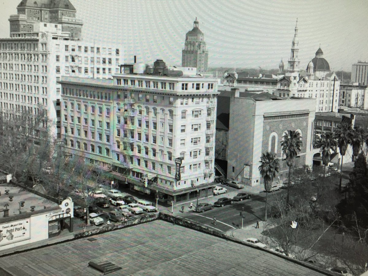 Photos of the Capitol Park Hotel building (9th & L) from yesteryear (c. 1940s and 1920s). Known as the Siller Building, it was home to “Healds College” “Dunn & Frazier Furniture, “Noonan Furs,” and “Hotel Park.”