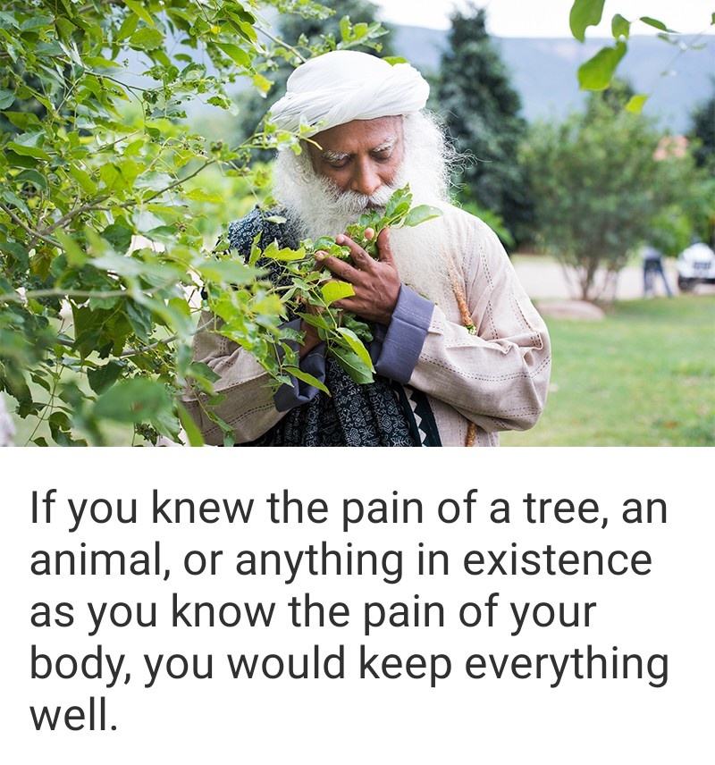 If you knew the pain of a tree, an animal, or anything in existence as you know the pain of your body, you would keep everything well.