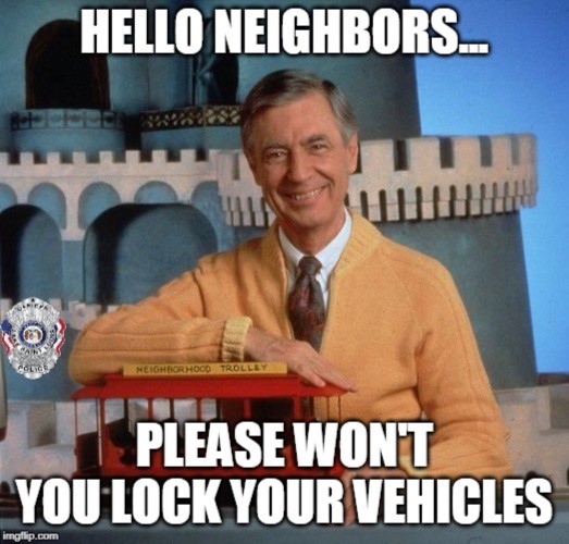 This is a reminder to lock vehicles up at all times, not just at night.
