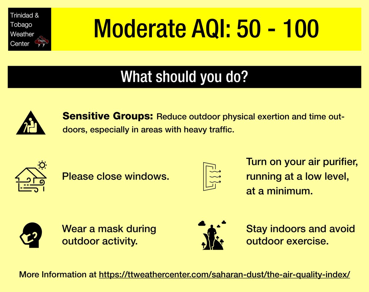 #SaharanDust concentrations are moving across T&T, with air quality across the country varying between moderate to unhealthy for sensitive groups. Highest dust levels will continue through the next 12-18 hours with decreased visibility. https://ttweathercenter.com/significant-surge-of-saharan-dust-forecast-to-affect-tt-lesser-antilles/ …pic.twitter.com/zb1ILEX8rc