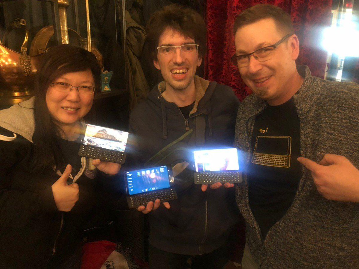 #SailfishOS on@thefxtec#Pro¹ got such a good reception at the#Fosdem Community Dinner Yesterday.@cybette still fresh on stock,@teringleider sporting his kernel hack. Thanks for the educated opinions everyone <3pic.twitter.com/SyOjnH9Z3b