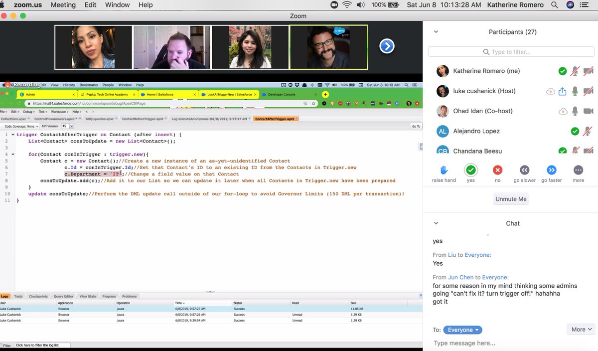 #SalesforceSaturday@PepUPTech Beyond Admin Developer Class! Learning Apex Triggers! Thanks