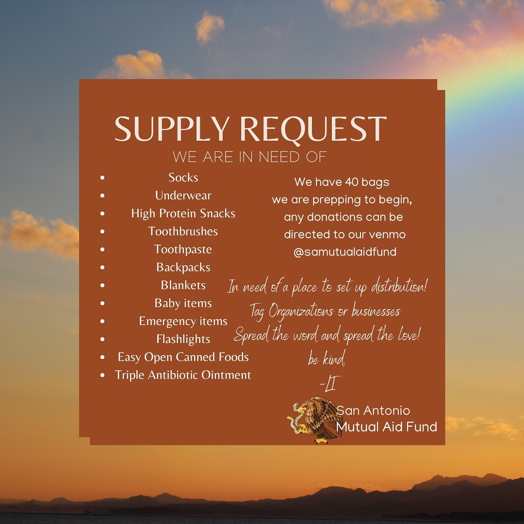 #SanAntonio SHARE, COMMENT AND BOOST. we have 40 emergency bags coming in and we still need some of the supplies!! Our goal is 140 Emergency Bags distributed to the Houseless Community. Show up and Show out!!#MutualAidRequestpic.twitter.com/hMS0HCq5wJ