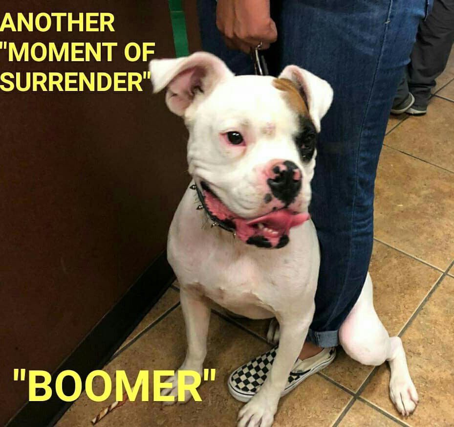Beautiful Boomer is seen here being dumped by his owner. This sweet boy is deaf!