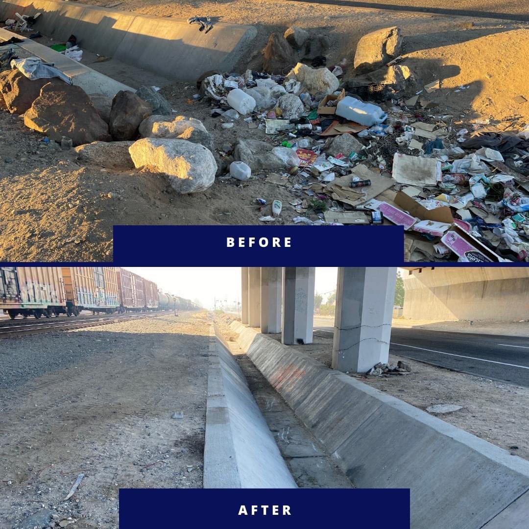 WESTERN DISTRICT CONDUCTS CLEAN UP From September 14-15, 2021 our Western District Resource Officers partnered with BNSF to conduct a cleanup near the railroad tracks that run along Cajon Blvd.