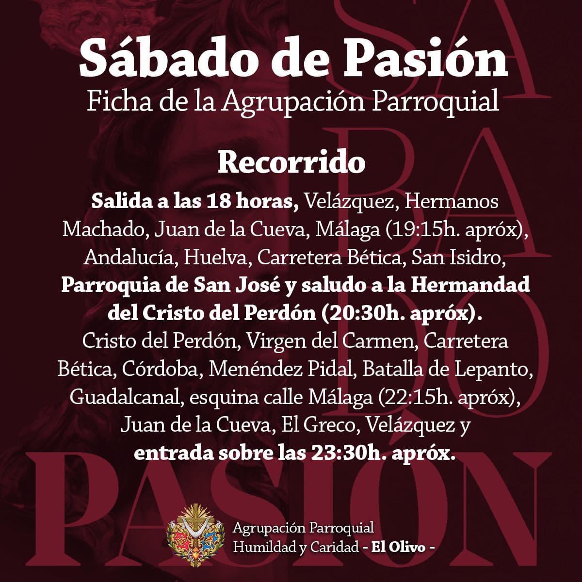 Hoy Sábado de Pasión, acompañaremos a la Asociación Parroquial Humildad y Caridad “El Olivo”