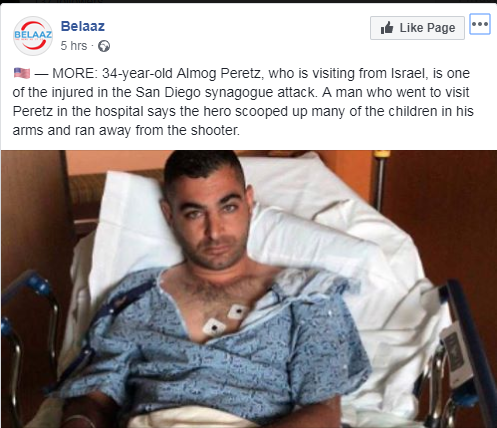 #Israel. He was at the Chabad#Poway#SanDiego Synagogue when the shooting occurred. Even though Almog took a bullet to the leg, he still managed to grab number of children by the hands and run with them to the exits. THIS is a#hero!pic.twitter.com/3U5BuunsiR