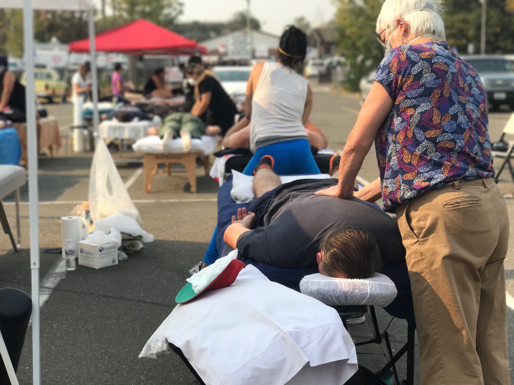 Massage therapists from all over have come to Sonoma Fairgrounds to treat firefighters.