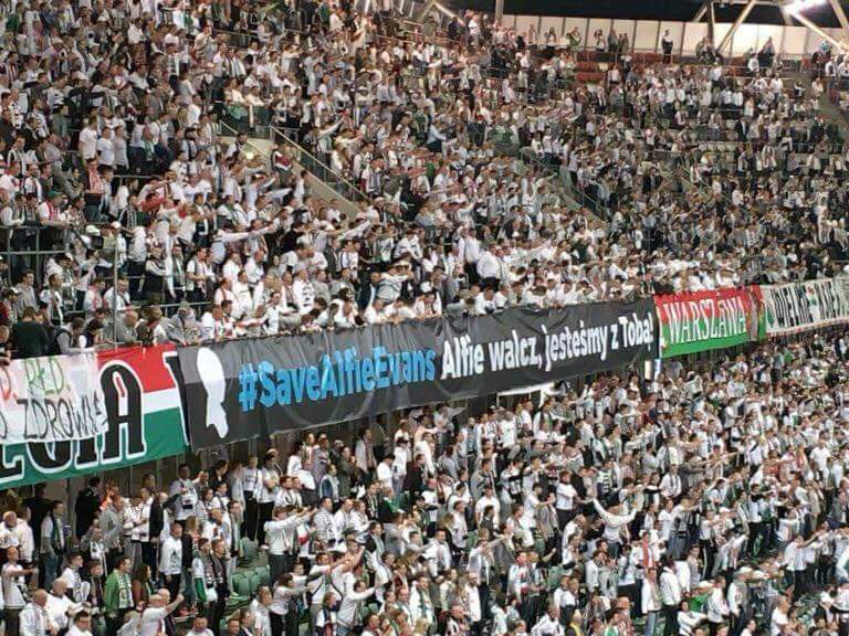 #AlfiesArmy Your support continues to grow precious Alfie Photo from tonights game between Legia Warszawa & Korona Kielce!#AlfiesSong#SaveAlfieEvans pic.twitter.com/SUk8uTp1h4