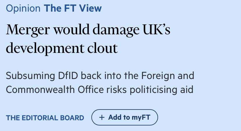 @DfID_UK with@FCO could have grave consequences for the world’s poorest people. An independent DFID does such outstanding work to ensure we leave no-one behind#saveDFID https://www.bbc.co.uk/news/uk-politics-53062858 … -