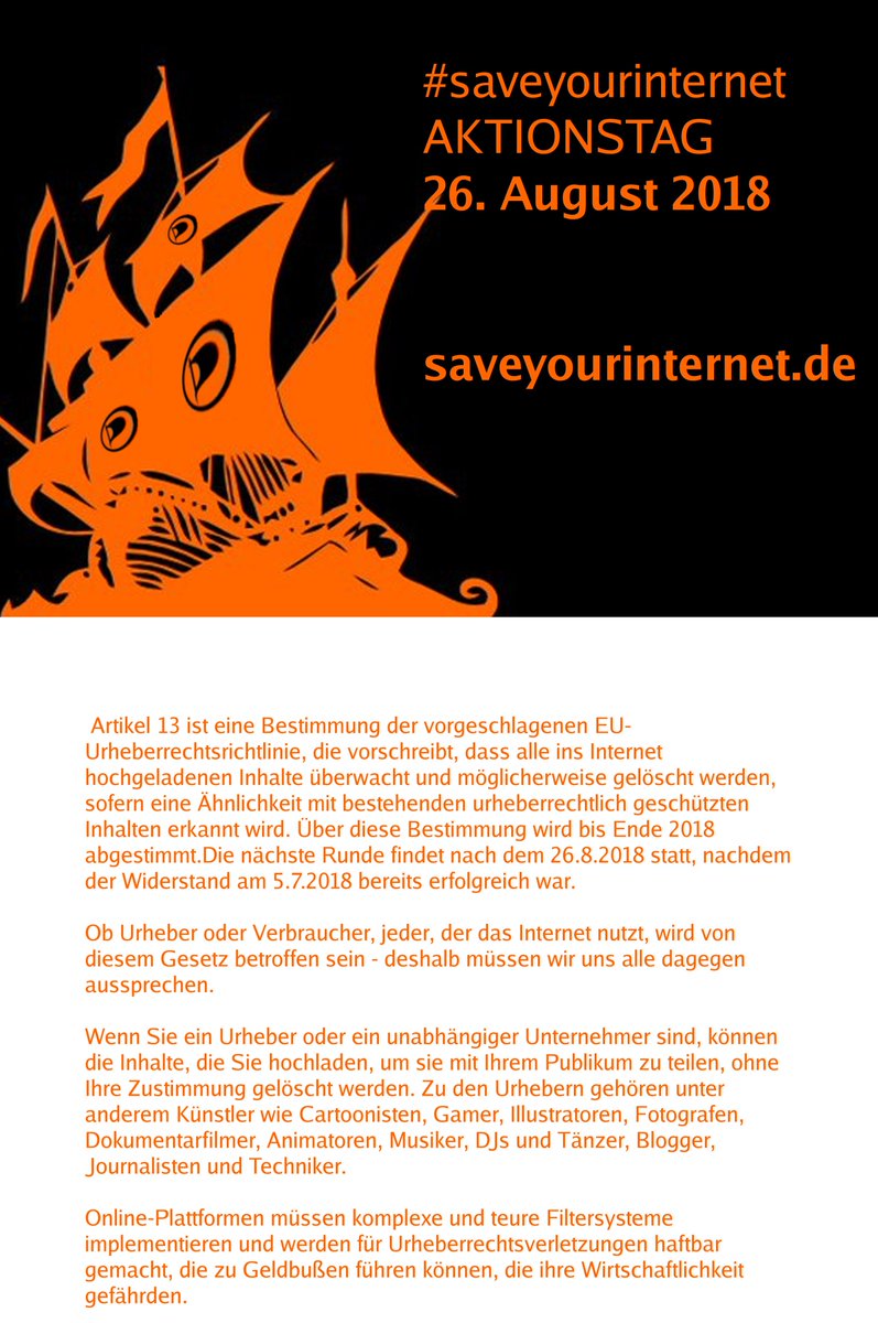 #Article13 and#Article11. Let's keep on fighting and stop the disastrous#CensorshipMachine and#LinkTax. Thanks to everyone who is helping to#saveyourinternet