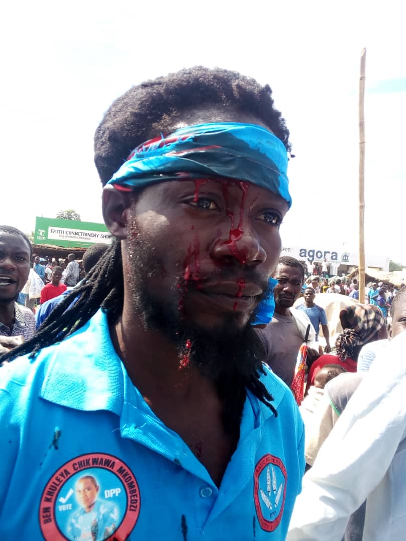 #Joseph Matekenya and ruling DPP supporter who was severely beaten up by the opposition MCP's militant operatives in Chikwawa district because he was wearing DPP regaria.#SayNotoPoliticalViolence@amnesty@hrwpic.twitter.com/iNvdAB3gSH