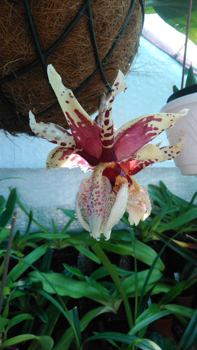 Stanhopea nigroviloaecea my all time favourite, opened yesterday late morning. So glad it's flowered the week I'm off so I bet to smell it as much as I can the all time best smelling orchid ever.