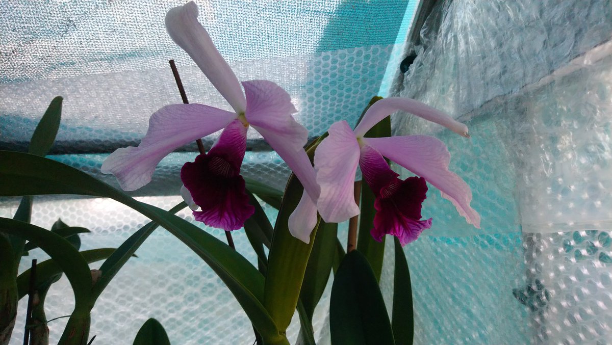 Cattleya purpurata, a favourite for mine unfortunately only two buds this year hopefully next year it will be back to to it four flowers.