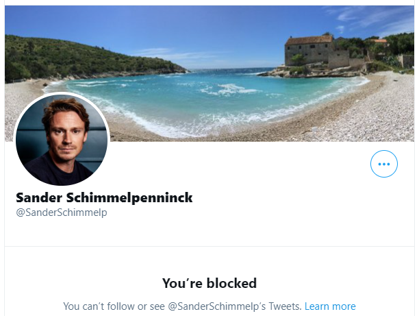 #Schimmelpenninck. Hij heeft volgens mij het halve land geblockt dus die missen dan een lach momentje https://twitter.com/WybrenvanHaga/status/1378593084372611075 … -
