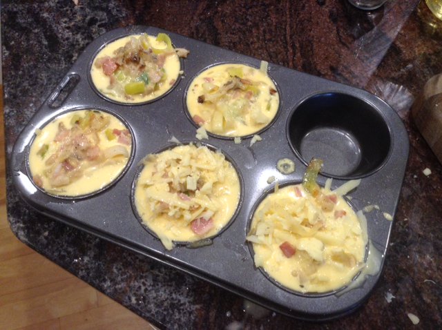 And, in the oven now.. I line my base with wafer thin slices raw potato, & season that layer before layering all else. Is YUM! And - what to do w leftover leek/bacon/potato? Mini Frittata!