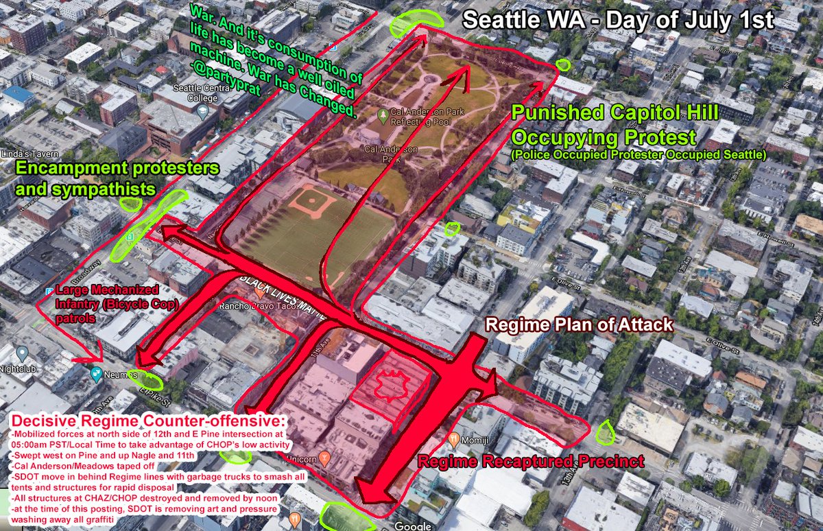 18. Day 22 of following an unclear incident where 2 black teens were killed by CHOP security after driving a stolen jeep in the ball field, Police amass on 12th & Pine across the precinct and bring an end to the / project