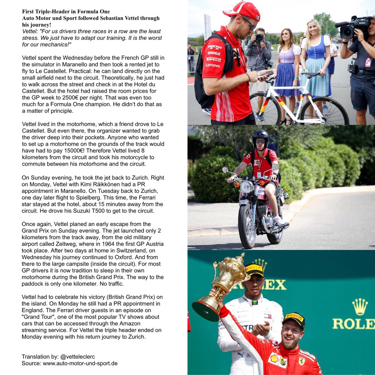Ever wanted to know how Sebastian Vettel‘s schedule was during the first F1 Triple-Header? AMuS followed Vettel through his journey! "For us drivers three races in a row are the least stress. We just have to adapt our training. It is the worst for our mechanics!"