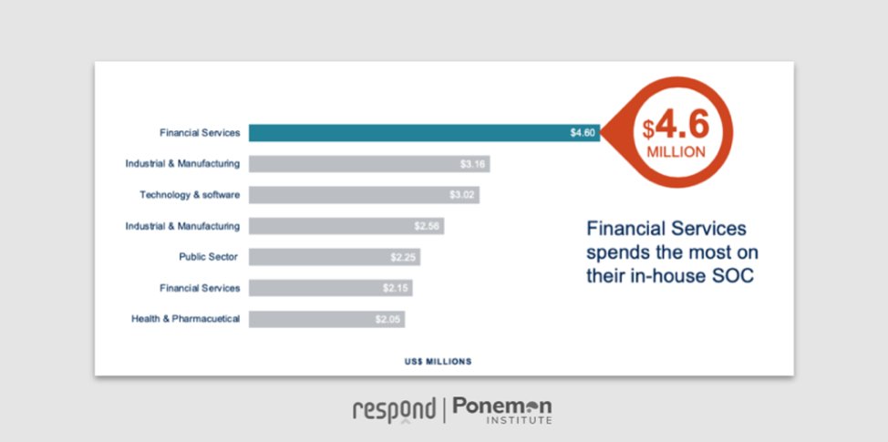 #Financialservices organizations spend the most on their in-house SOCs at $4.6M annually. Get the report from@ponemonprivacy to learn more: https://hubs.ly/H0mRjS-0#SecOps pic.twitter.com/97VthT2KXG