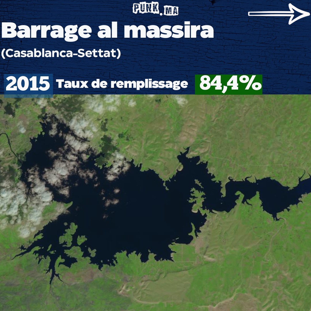 #sécheresse sur le barrage al massira (#Casablanca-Settat): entre 2015 et 2022 le taux de remplissage a baissé de 77%. Images satellites du barrage entre 2015 et 2022pic.twitter.com/TEol9z1hcI