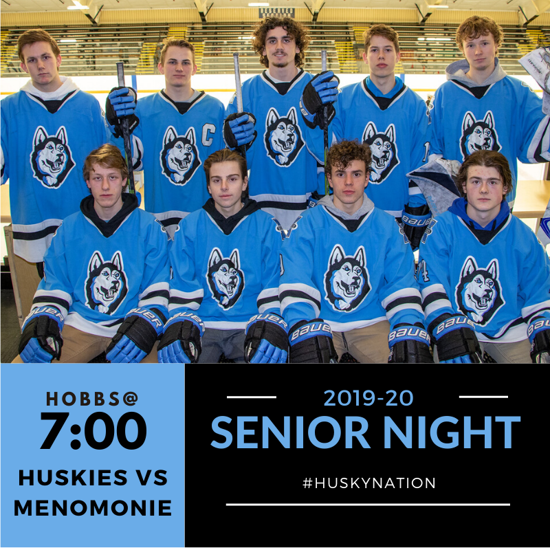 NORTH HOCKEY SENIOR NIGHT! Come out and watch your Huskies take on Menomonie tonight 7:00pm Hobbs Ice Center.