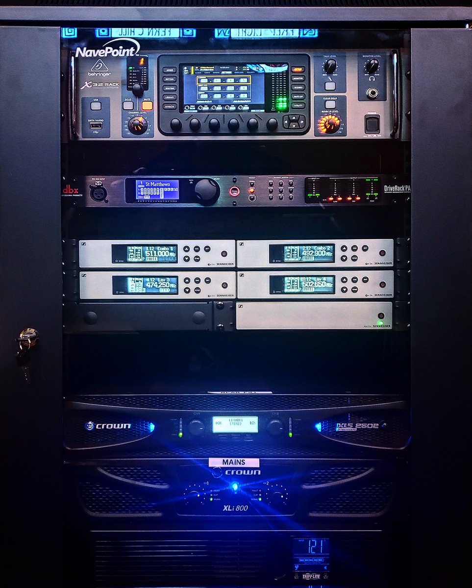 The Setting: live audio for a church The Plot: everything pictured stops working suddenly The Antagonist: [???] The Solution: turning all of it off and back on again. .