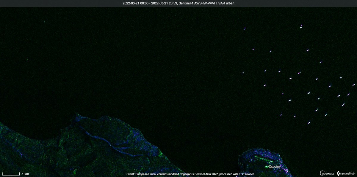 #Mariupol#Odessa under heavy bomb and rocket fire, hundreds of#ships under the flags of many countries anchored in the vicinity of the#Kerch Strait, several vessels sailing around#Berdyansk ~ 15km from the shore@sentinel_hub#sentinel1 -AWS SAR Urban#OpenDatapic.twitter.com/pVwgf6B6BL