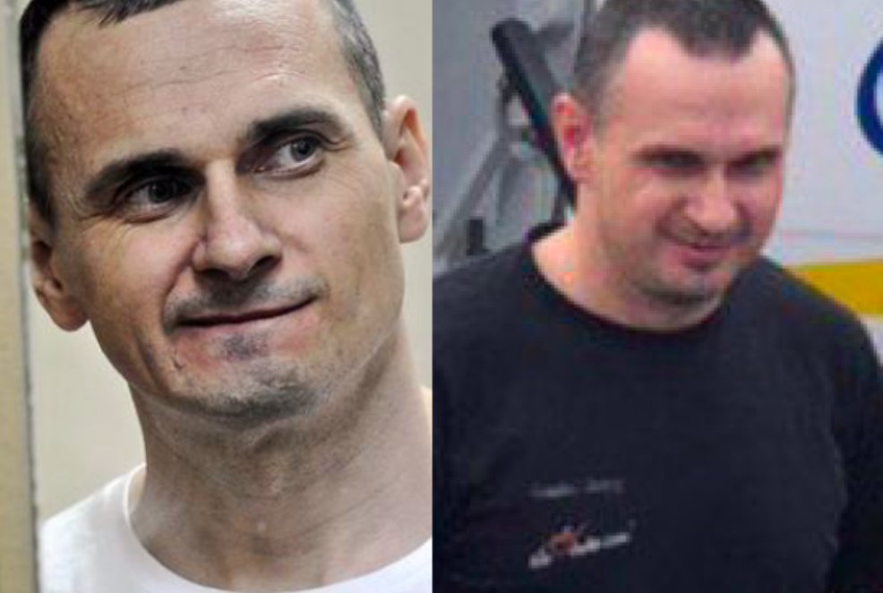#Sentsov, pardoned by Putin and returned to Ukraine, before (left) and after hunger strike (right) in the Russian prison pic.twitter.com/P4L2sd7Rvh